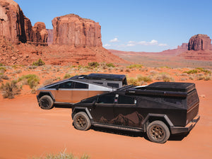 Change your setup in minutes. Add a rear and top closure to transform your rack into a fully enclosed bed cap. Or take it further with our upcoming integrated tent that is three inches tall and 110 inches long and opens from the bed turning your Cybertruck into a true camper by using this Cybertruck Bed Rack Kit.